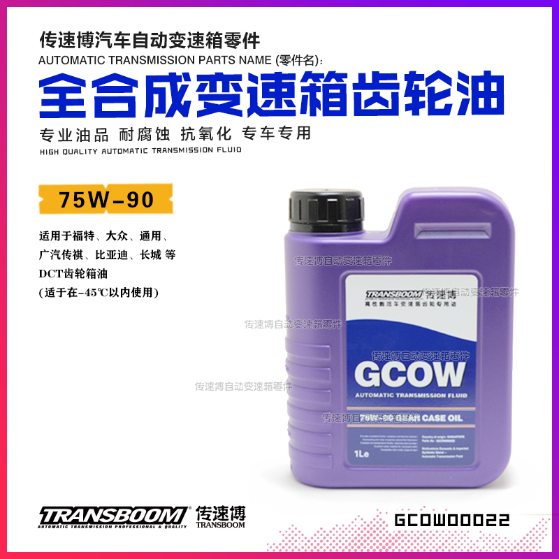 适用车型:适用于福特、大众、通用、广汽传祺、比亚迪、长城 等 DCT齿轮箱油 (适于在-45℃以内使用)